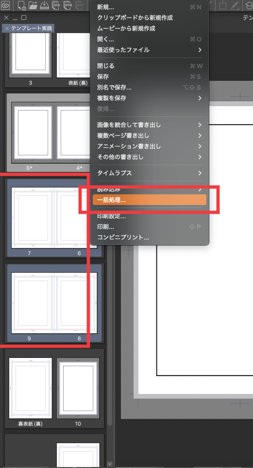 ちなみに、原稿ページを増やしたいときはcmc(ページ管理)ファイルで片面や見開きのページを選択して右クリック→ページの複製を選択すれば、テンプレートを保持したままページを増やすことができます。