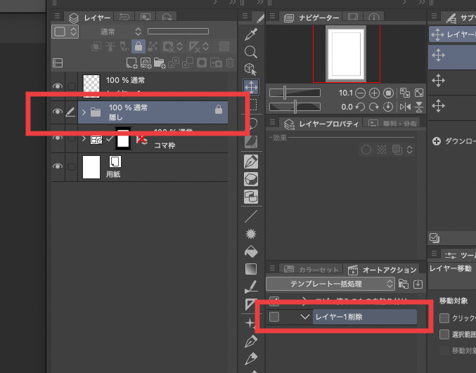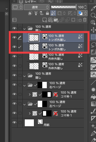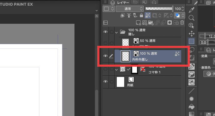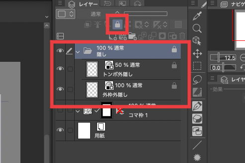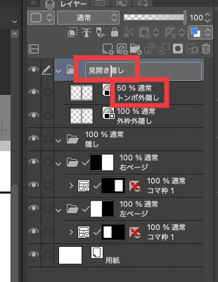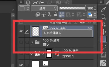 また、元の外枠隠しレイヤーは「隠し」などのわかりやすい名前をつけたフォルダに入れておきます。