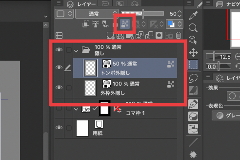 濃度を再び50%にしたら、同様に外枠隠しも結合します。