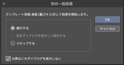 枚数が多い場合は「以降はこのダイアログを表示しない」にチェックを入れることで残りの分全てを確認なしで実行してくれます。