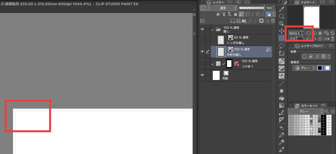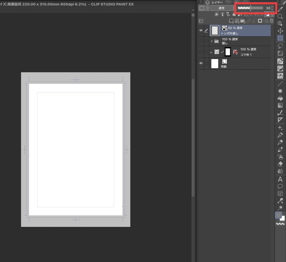 できたら外枠隠しと区別しやすいように濃度を50%くらいにしておきます。