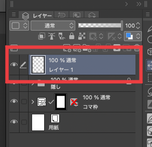 まずはレイヤー1以外の適当なレイヤー、フォルダを選択します。