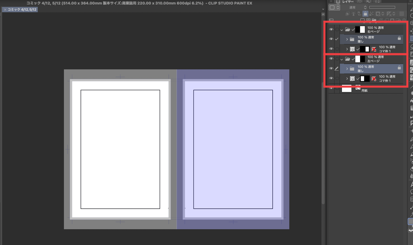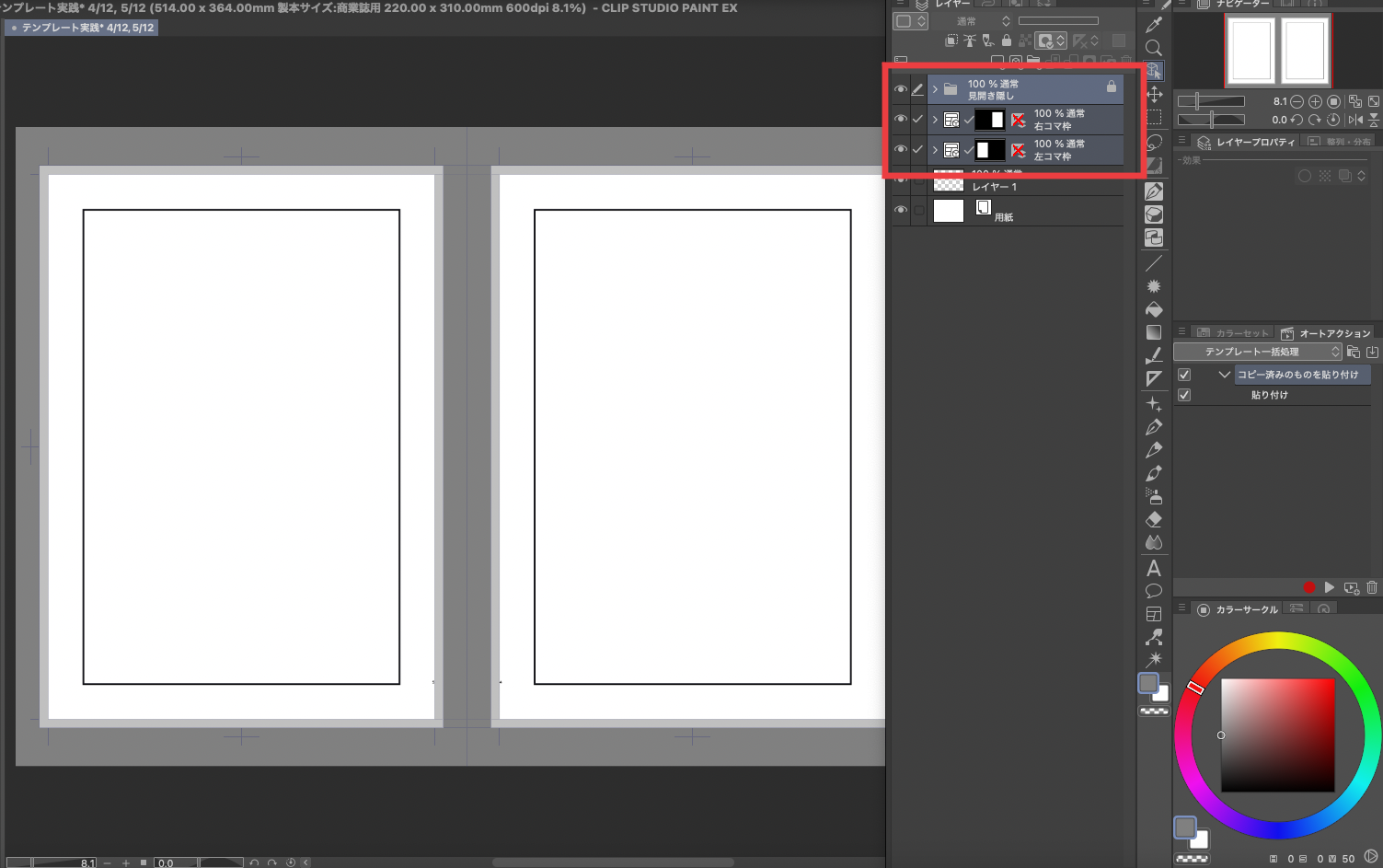 今回は内枠(製本しても問題なく読みやすい範囲)にコマフォルダを追加しました。