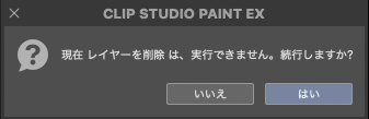 対象レイヤーが既にないため、以下のような警告が出ますが「はい」で続行します。