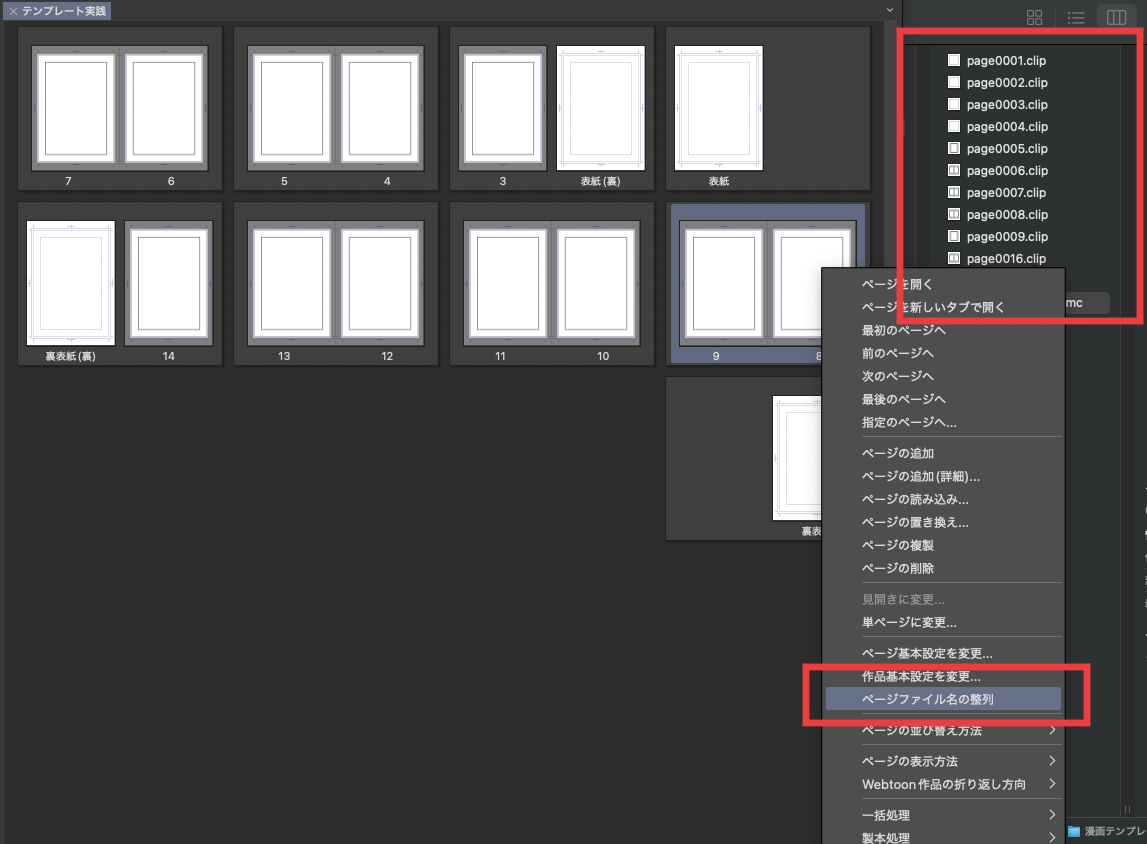 上の画像でファイル名が飛んでしまっていたのが、見開きかどうかも含めて整理された状態になったのがわかります。